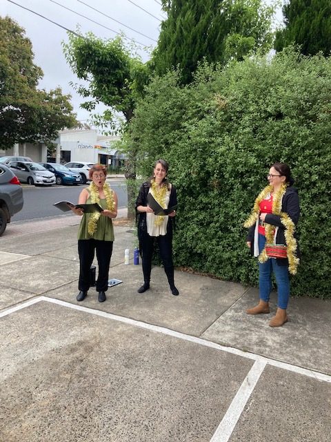 On Wednesday 15 December a wonderful duo of singers has visited Heidelberg West Business Park with their selection of Christmas songs. They performed at Dallas Business Centre, Heidelberg Lunch Box, Thai friends Cafe and Workshop Cafe. Thank you all who have joined them in their versions of traditional and some untraditional songs. We were happy to spread some Christmas love and we hope you’ve enjoyed it as much as we did.